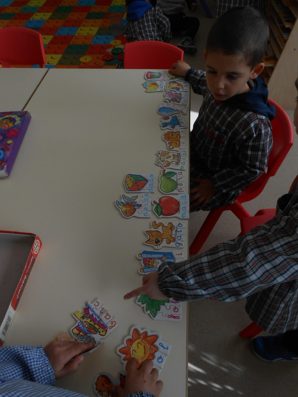 A brincar estamos a desenvolver o vocabulário ampliando-o e dominando-o e a identificar os elementos sonoros das palavras.