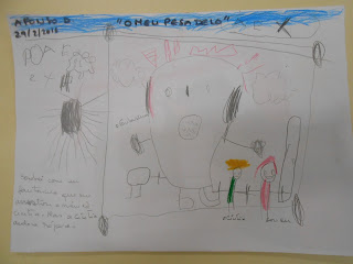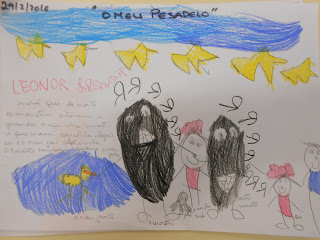 «Sonhei que de noite os monstros estavam a prender a minha mãe e queriam come-la. Depois eu e o meu pai salvamo-la. os monstros queriam também o meu pato»